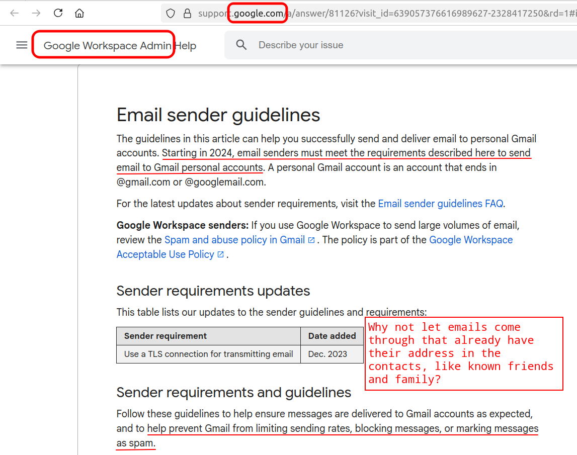 Beginning in 2024, Google's Gmail stopped allowing their users to receive emails from friends and family at various non-Google servers. This is effectively censorship and an attempt to force everyone to use Gmail or another big tech email account. But it would be better if people would ditch Gmail and use their own email servers, like we do with Mastodon, so that we can set our own rules on whose emails we receive.