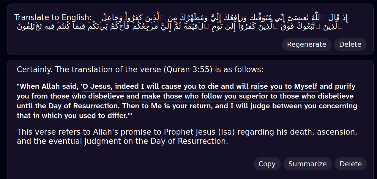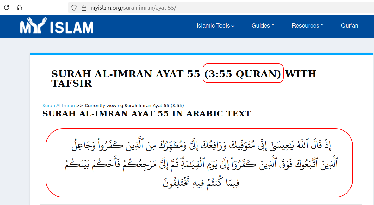Jesus died in our place, so that we may live. And he ascended up to heaven, as the Quran says, and he shall return, as the Quran also states.