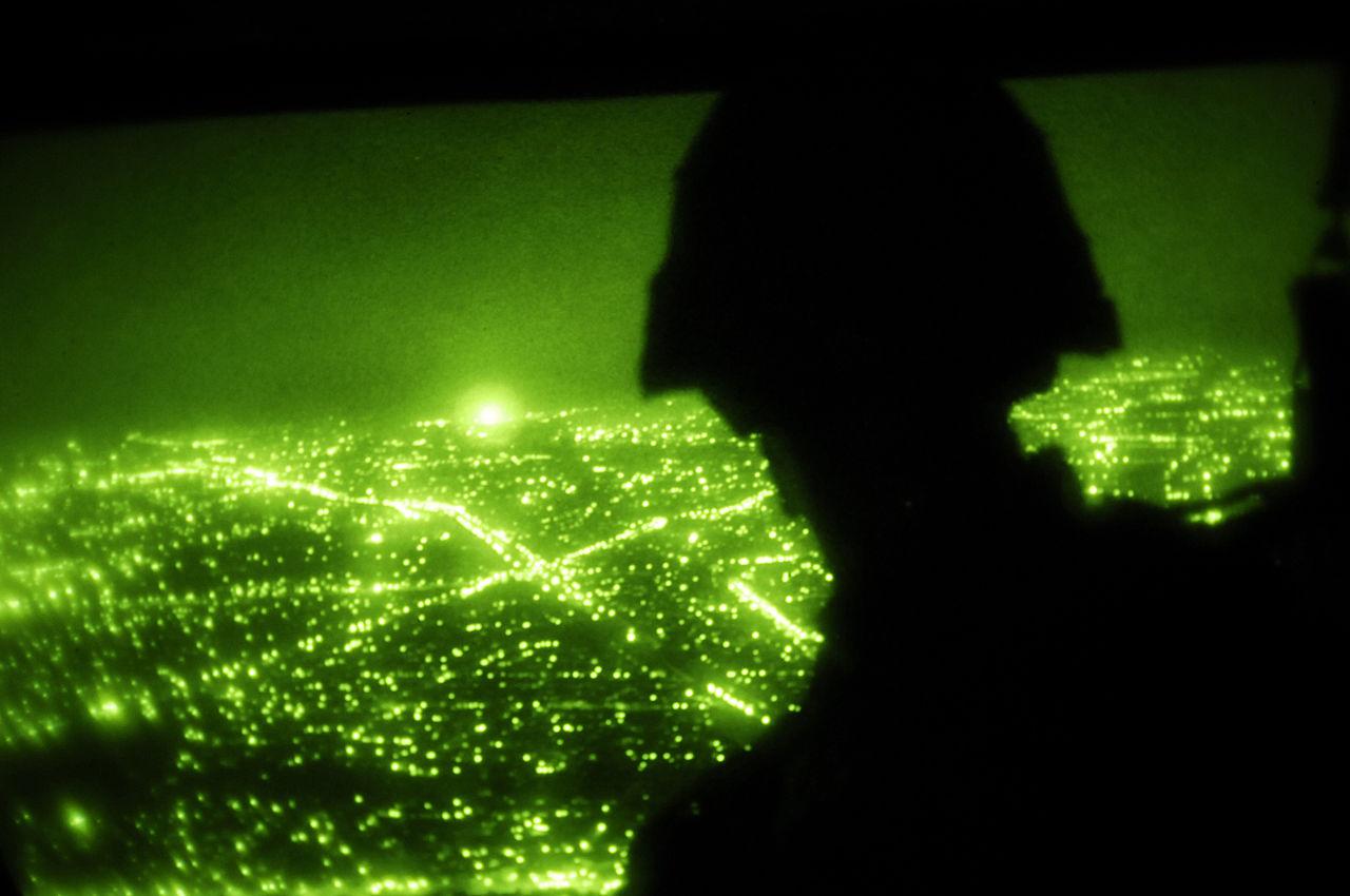 View from UH-60 Black Hawk over Baghdad, during a leaflet drop.