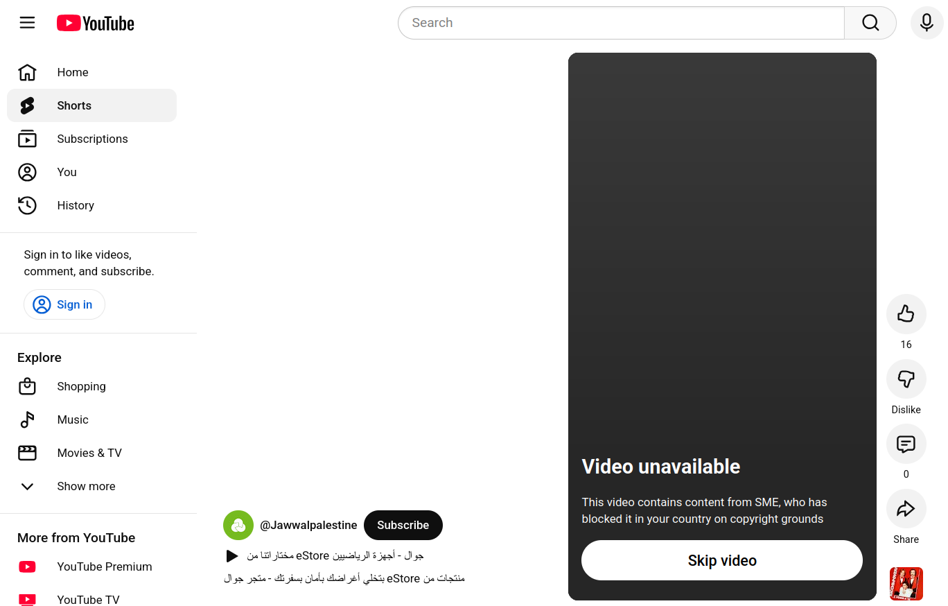 #YouTube blocks this content, pointing the finger at SME (Sony Music Entertainment). It is a video advertising electronics to #Palestine. There is no sign of #war in the video. The scenes look peaceful with no destruction. Why would they block this?