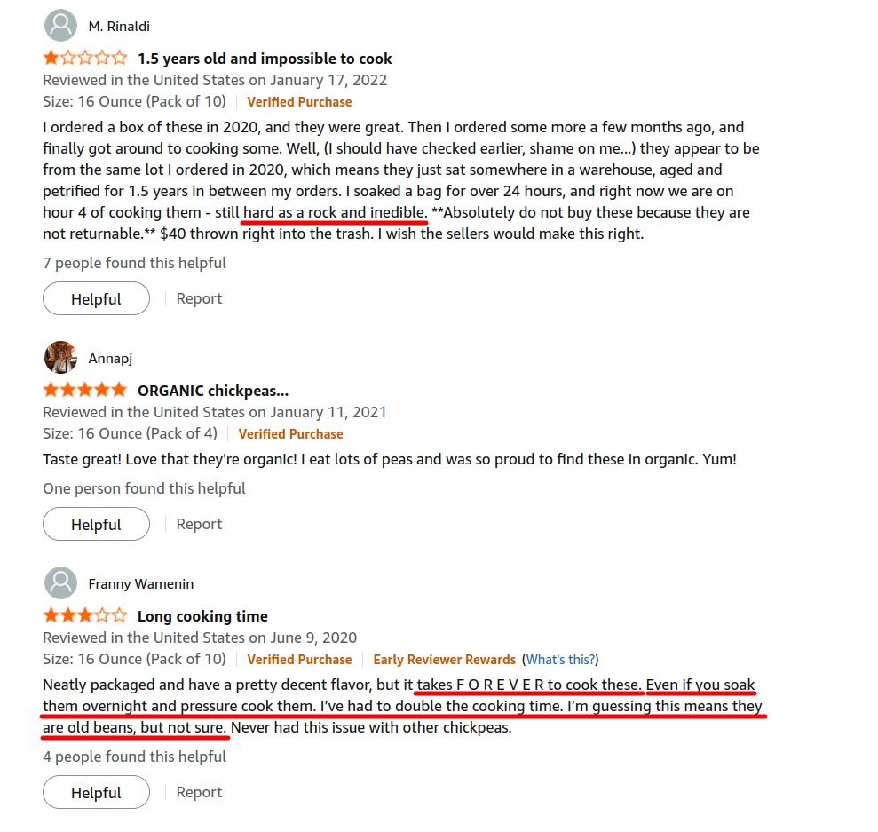 That was a common review on Amazon for #chickpeas. Screenshot taken today.