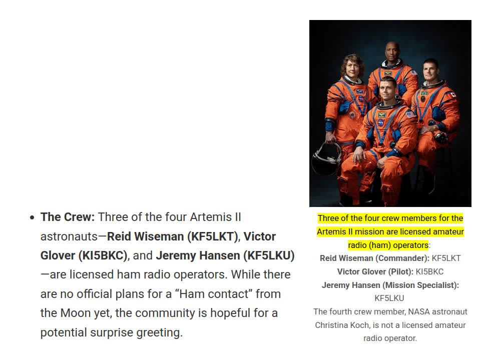 All the men in the current Artemis II moon mission are licensed amateur radio operators.